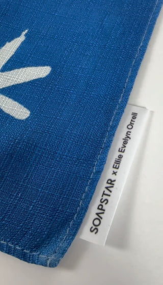 Koop hier de handgeschilderde indigo Furoshiki van SOAPSTAR x Ellie Evelyn Orrell