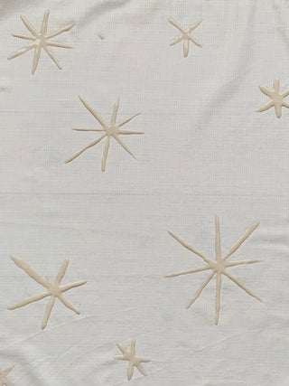In de samenwerking tussen SOAPSTAR en Ellie Evelyn Orrell werden de furoshiki met de hand beschilderd tijdens een zonnig winters weekend, net voordat de eerste sneeuw het Welsh landschap bedekte. De doeken zijn gedecoreerd met handgeschilderde sterren, geïnspireerd op Japanse symboliek. In deze culturele traditie belichamen sterren (hoshi) begeleiding en goddelijke bescherming, diep geworteld in het Tanabata-festival waar mensen wensen schrijven op delicate stukjes papier en deze ophangen aan bamboetakken onder de sterrenhemel. Elke zorgvuldig geplaatste ster vormt een harmonie met de organische variaties van de indigo verf, en weeft een verhaal dat aardse ambachtelijkheid verbindt met celestiale verbeelding – een vluchtig moment van creatieve energie, gevangen voordat de winterse stilte neerdaalt.